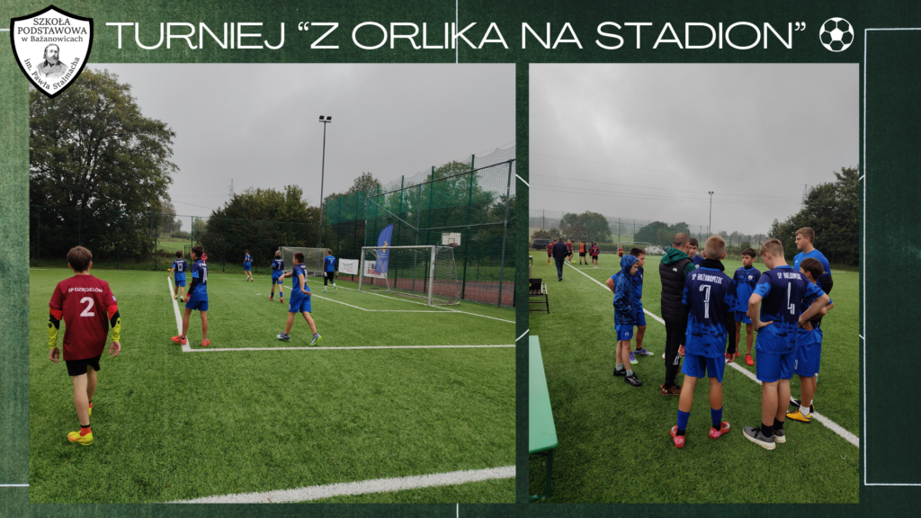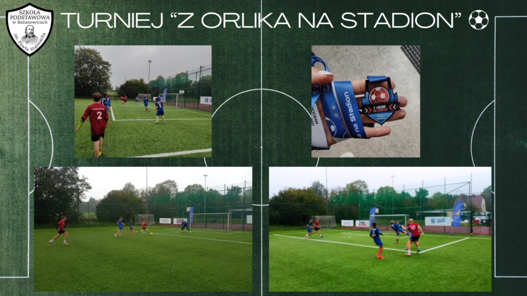 Nasza szkoła, choć najmniejsza w gminie, wystawiła drużynę do turnieju „Z Orlika na Stadion”, w składzie: Oskar Pustówka, Jakub Stanek, Miłosz Markuzel, Michał Plas, Igor Strzelec, Dawid Przebinda, Jakub Pala i Seweryn Kałuża. Chłopcy pokazali ogromne zaangażowanie, wolę walki i świetną grę, szczególnie w obronie. Choć nie udało się stanąć na podium, każdy zawodnik wrócił z pamiątkowym medalem i poczuciem, że reprezentował szkołę z prawdziwym charakterem.