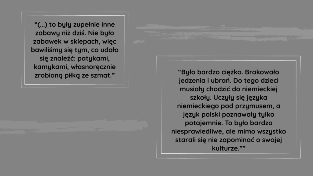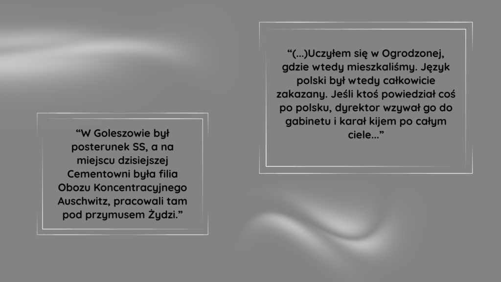Z tej okazji uczniowie klasy VIII wzięli udział w wyjątkowym projekcie edukacyjnym łączącym treści z języka polskiego i historii. Celem przedsięwzięcia było ocalenie od zapomnienia wspomnień osób, które przeżyły czasy wojny.
