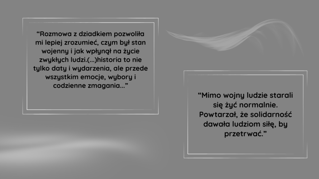Dzięki tym rozmowom młodzież mogła lepiej zrozumieć, jak wielką wartość mają wspomnienia świadków historii, a także docenić wolność i pokój, w jakich żyjemy dziś.